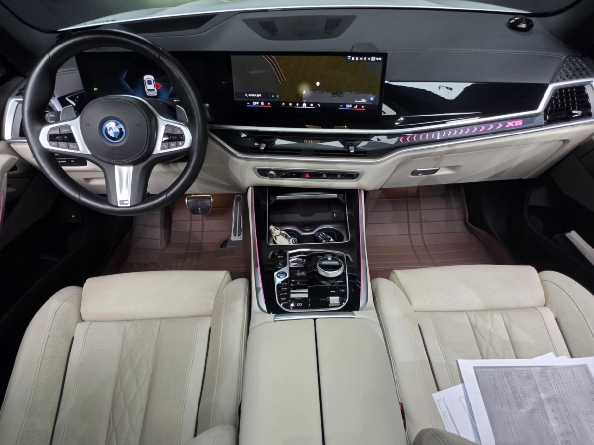 Просторный салон BMW X5 G05xDrive 50e M Sport 2025 позволяет с комфортом разместиться всем пассажирам. Вместительный багажник легко трансформируется, позволяя перевозить как повседневные вещи, так и крупногабаритный груз.