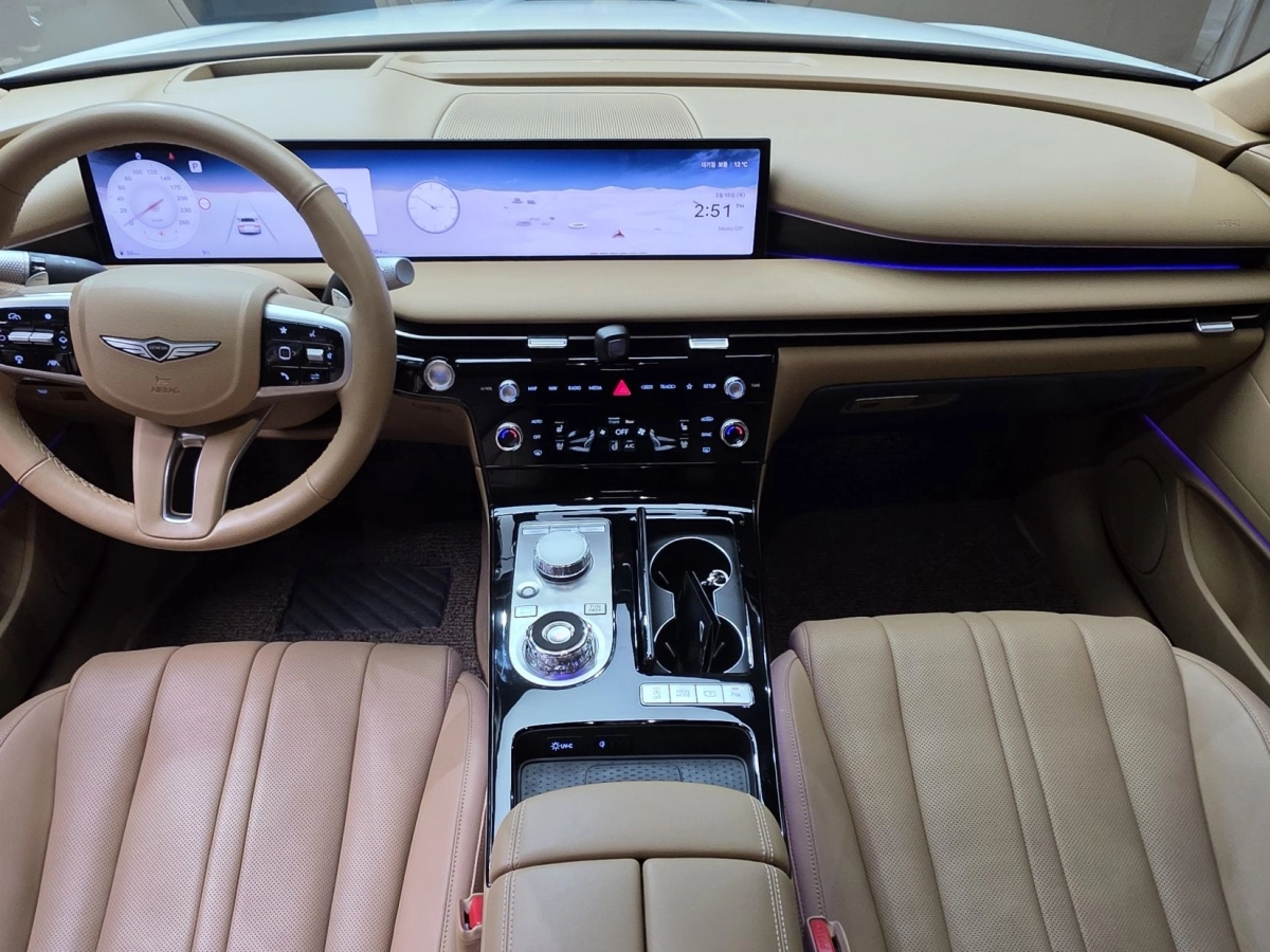 GENESIS G80 RG3 2025 отличается современным, динамичным дизайном и светодиодной оптикой. Интерьер выполнен с использованием премиальных материалов, а эргономичные сиденья обеспечивают комфорт даже при длительных поездках.